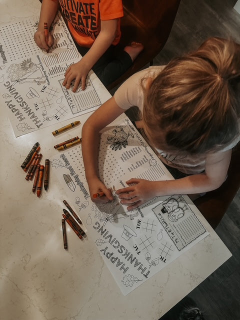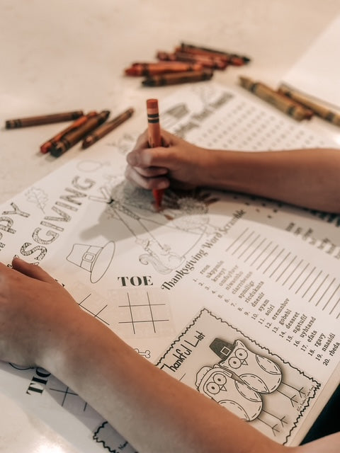 Create a warm and inviting atmosphere with our holiday placemats. Designed to make every detail of your feast special. We even have fun, colorable placemats for the little ones! Only $1/sheet, and you can mix and match as you like. 12" x 18". Disposable.